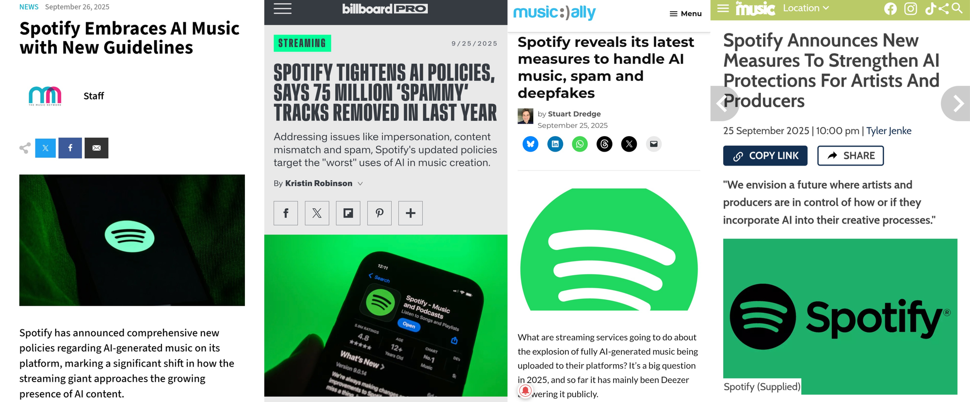 In September, Spotify revealed new policies to combat impersonation, spam and deceptive content enabled by generative AI. These include stronger enforcement for voice-cloning, a new music-spam filter and the introduction of industry-standard AI disclosure credits for tracks.